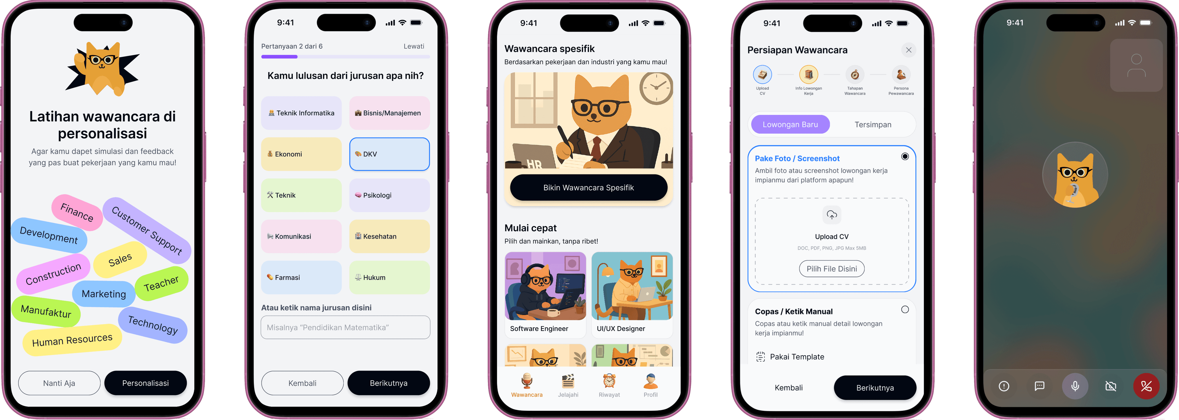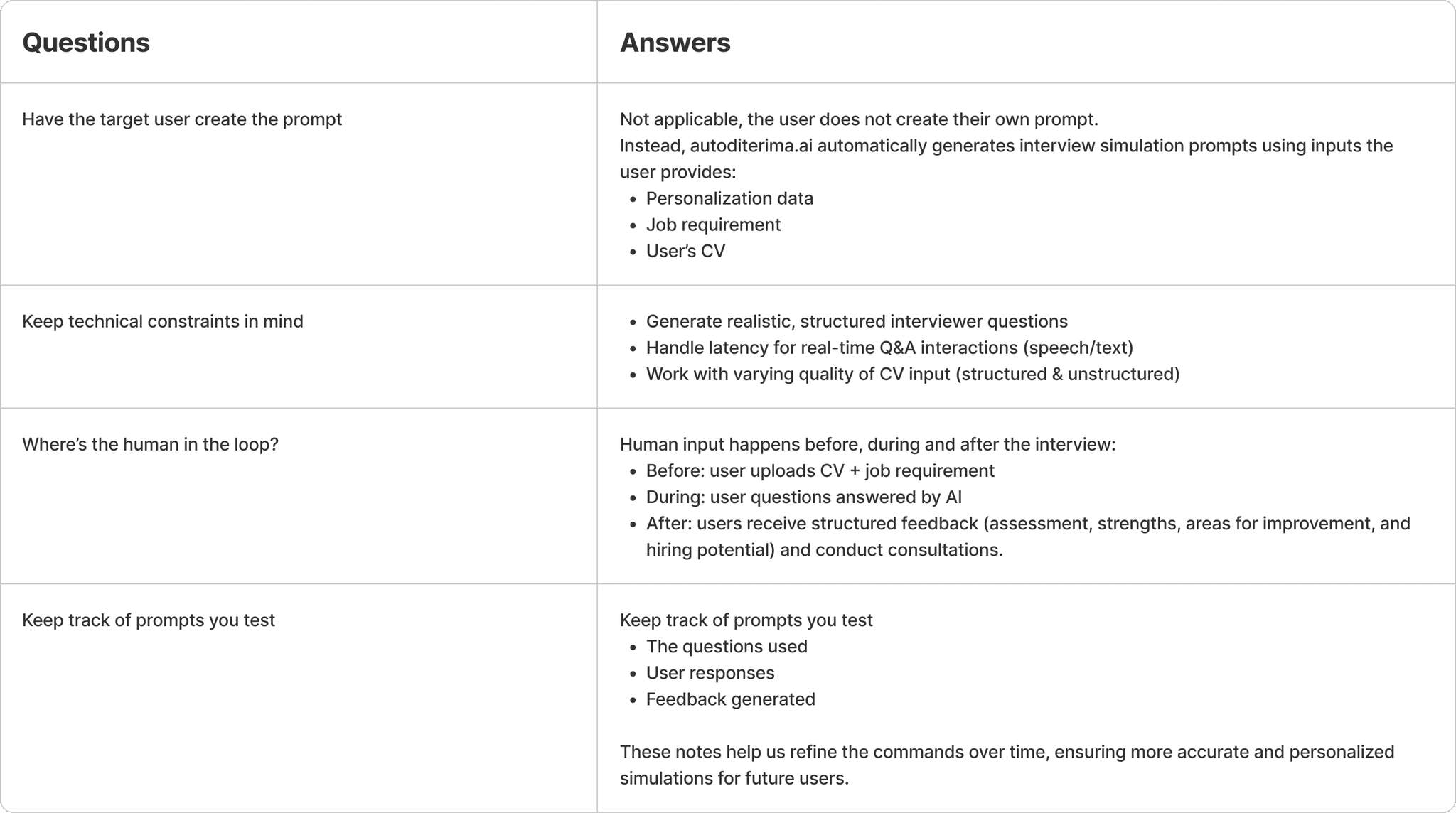 Developing realistic AI-based interview simulations, based on CV and job requirements provided by users
