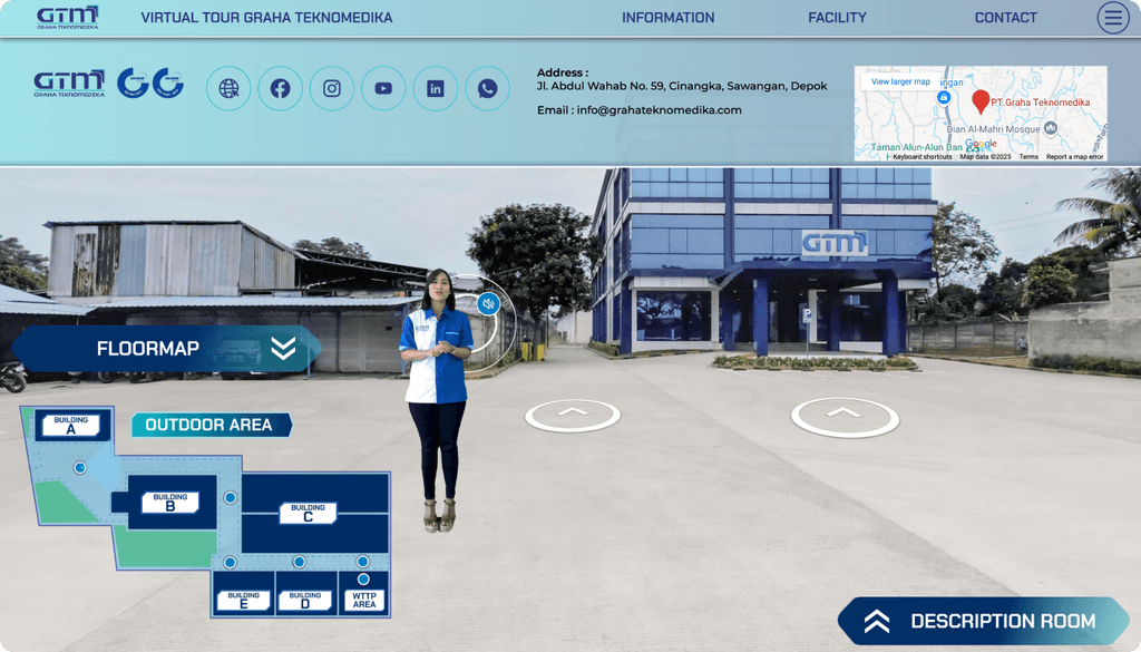 PT. Graha Tekno Medika is a company engaged in medical technology, and they want to offer their clients and customers a more interactive and modern experience through a virtual tour of their facilities. This virtual tour aims to increase customer understanding of the products and services offered, while also providing an overview of the company's infrastructure.